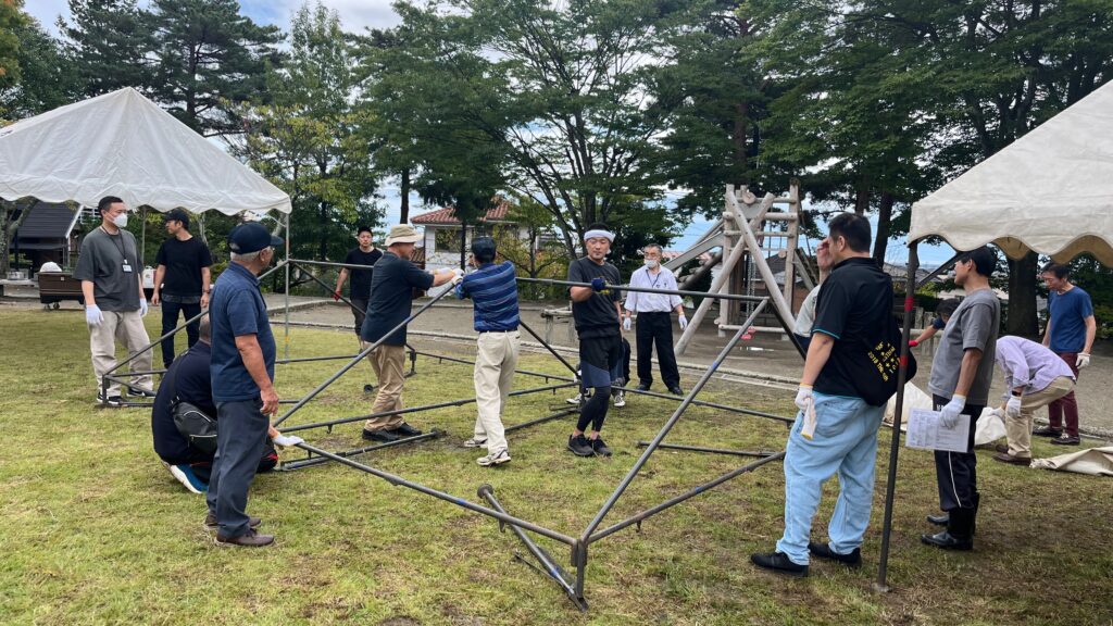 10:00 設営開始(テント、机、椅子、遊具封鎖)